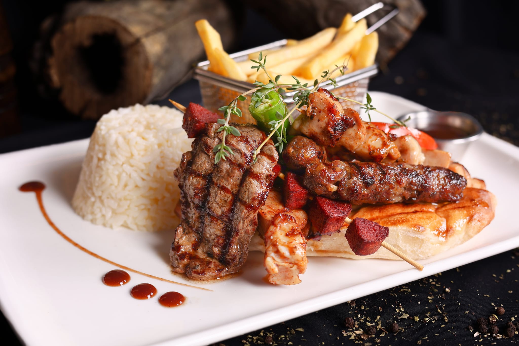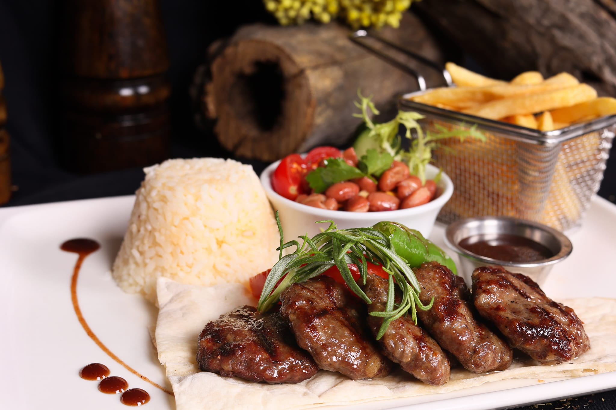 Dana Bonfile, Piliç Izgara, Tavuk Şiş, Sucuk Şiş, Akçaabat Köfte, Pilav,Cips,Barbekü Sos
