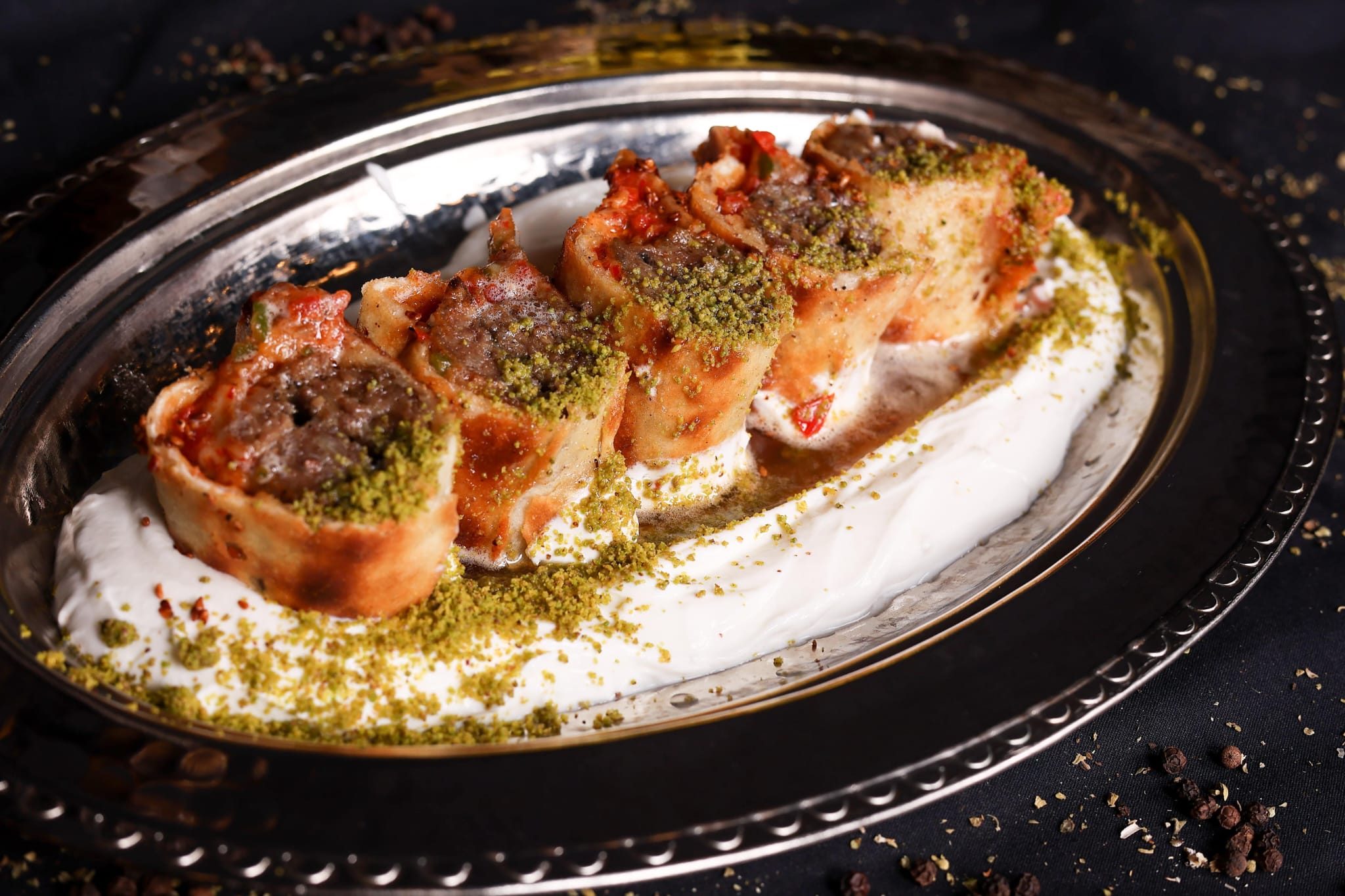 Adana Şiş, Közlenmiş Kapya Biber, Yeşil Biber, Soğan, Sarımsak, Kaşar, Süzme Yoğurt, Tereyağı